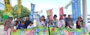 2025年度「原水爆禁止国民平和大行進」は6月15日、栗原市若柳「かりや橋」で岩手県から宮城県に引き継がれ、国道4号線コースと国道45号線コースのふた手に分かれて行進して、6月19日に仙台市で合流。6月22日に新地町役場前で福島県に引き継ぎました。行動には宮城革新懇も参加しました。