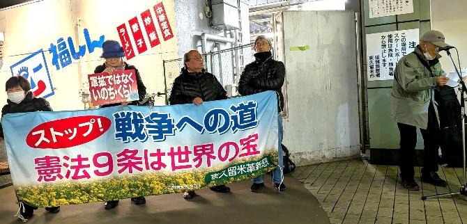 大阪・枚方革新懇が呼びかけ「イランへの軍事行動やめよ」市役所前スタンディングに58人