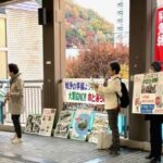 大阪革新懇は11月21日、午前中に吹田市で、午後は箕面市でそれぞれの地域革新懇と合同で街頭宣伝を行いました。この行動には合わせて35人が参加しました。 買い物客が立ち止まって聞く姿も 吹田市のイズミヤ千里丘店前では、…