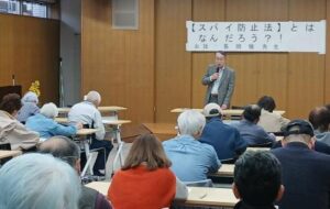 三田革新懇は3月29日、「『スパイ防止法』とは何だろう?!」と題した講演会を行いました。関西学院大学名誉教授の長岡徹さんがお話しました。