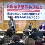 兵庫革新懇は3月20日、第46回総会を開催しました。 総会は近年にない100人を超える集まりになり、石川康宏さん(全国革新懇代表世話人・神戸女学院大学名誉教授)の記念講演「総選挙結果と日本政治の展望」を受け、樫村庸一…