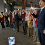 4月3日19 時から、JR 六甲道駅で緊急の「ペンライトアクション」が取り組まれました。 灘革新懇、YMCA、灘区9条の会など幅広い団体から、また、情報サイト「デモカレンダー」を見て参加した人がおよそ19人参加するな…
