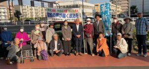 大阪革新懇は12月2日、午前中に城東区で、午後は平野区でそれぞれの地域革新懇と合同街頭宣伝を行いました。この行動には合わせて40人が参加しました。合同街宣は、11月の行動に続く第2弾です。