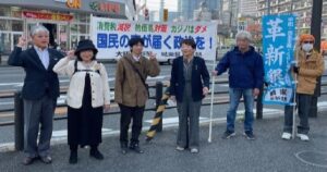 数削減を主張。日本は英国やフランスなどに比べても人口比で議員が少ない。結局、国民の声が届きにくくなる。物価高の要因は円安。高市さんはアベノミクスを継承する。つまり円安を続けるということだ。こうした政治を変えよう」と訴えました、前島さんは、「高市さんは軍事費の拡大や非核3原則の見直しなどを言い出した。平和守る声をあげましょう」と呼びかけました。小川さんは、「維新が4兆円の医療費削減を言い出して、アトピーや喘息の薬などを保険から外そうとしている。一方、高市内閣の経済対策には消費税減税が消えた。最賃1500円も先送りだ。これでは暮らしはよくならない」と訴えました。荒田さんは、「万博が終わりカジノ建設が始まっているが、カジノ事業者の正式認可は下りていない。裁判も行われている。カジノのターゲットは日本人だ。開催されれば毎年40万人の依存症患者が生まれる可能性がある。粘り強く運動を進める」と表明しました。